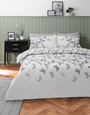 Grey Butterfly Floral Reversible Duvet Cover Set Home George At Asda